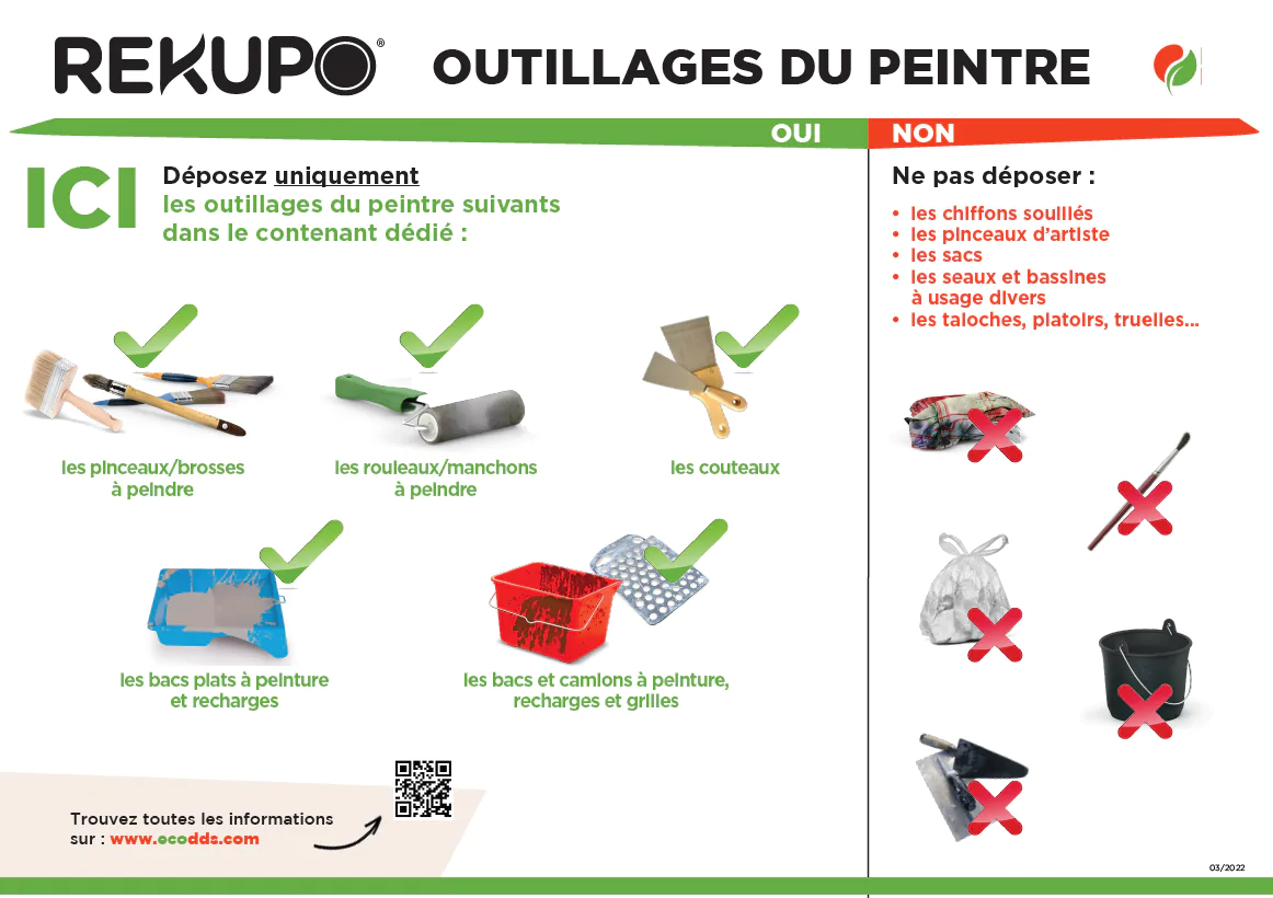 Vous pouvez désormais déposez vos outillages du peintre en déchetterie, ceux-ci seront pris en charge par notre partenaire ECODDS*.